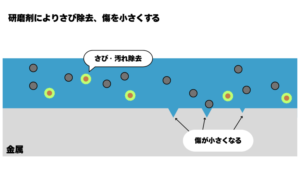 • 研磨剤の粒子は小さく傷にはなりにくいですが、磨く対象物の硬度が低い場合は表面に傷が残る場合があります。