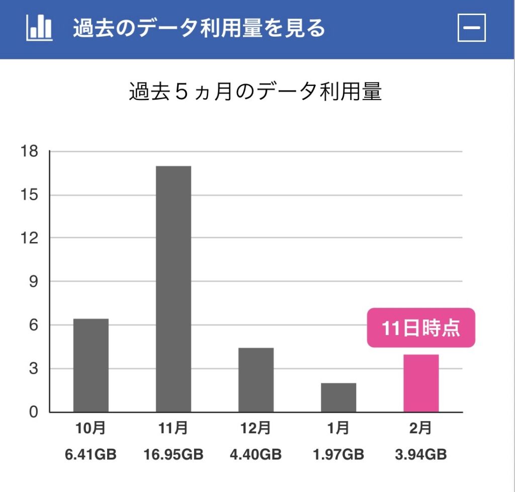 実際に私のデータ利用量をご覧ください。